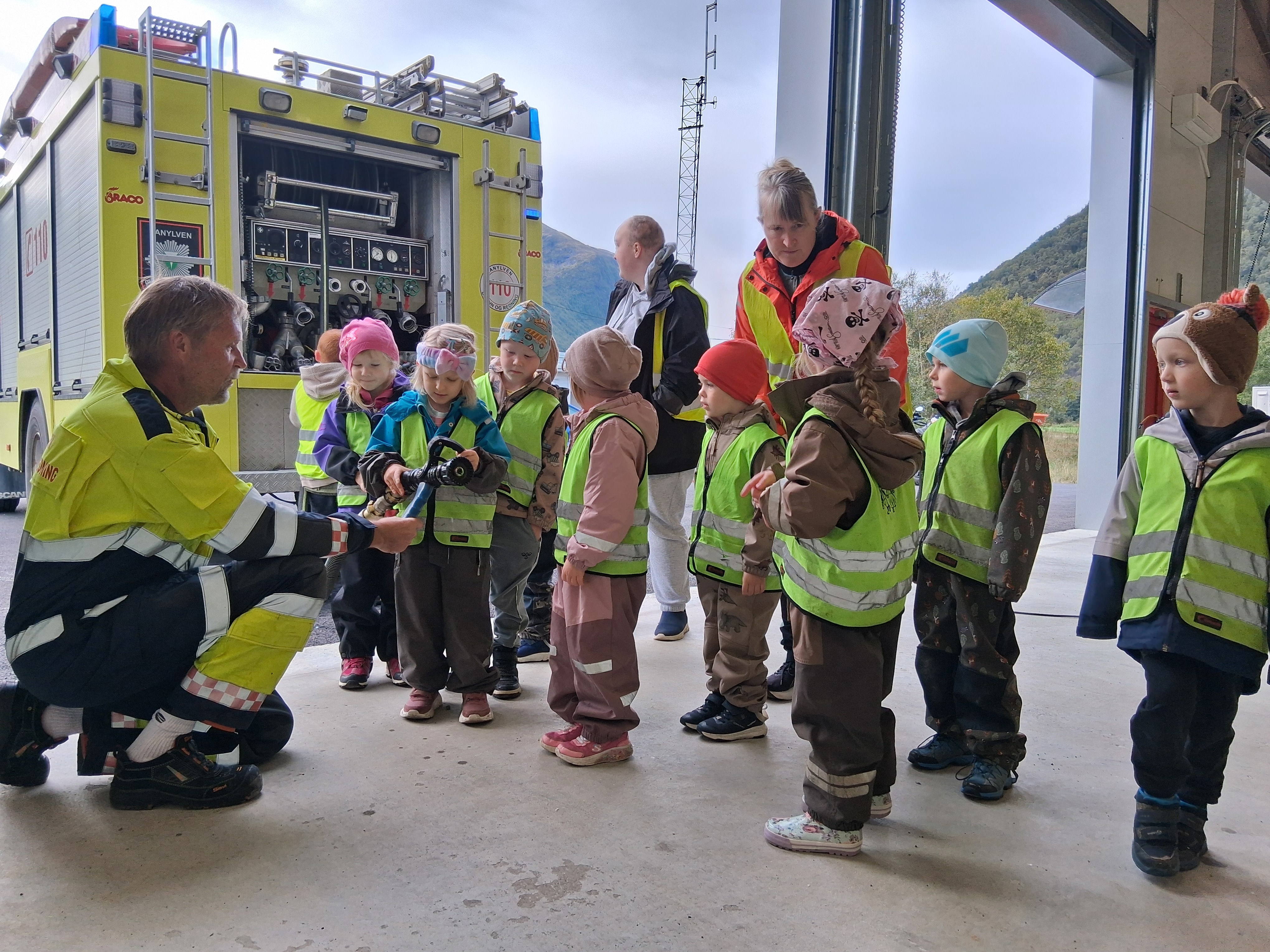 Barnehagen på besøk i branngarasja
