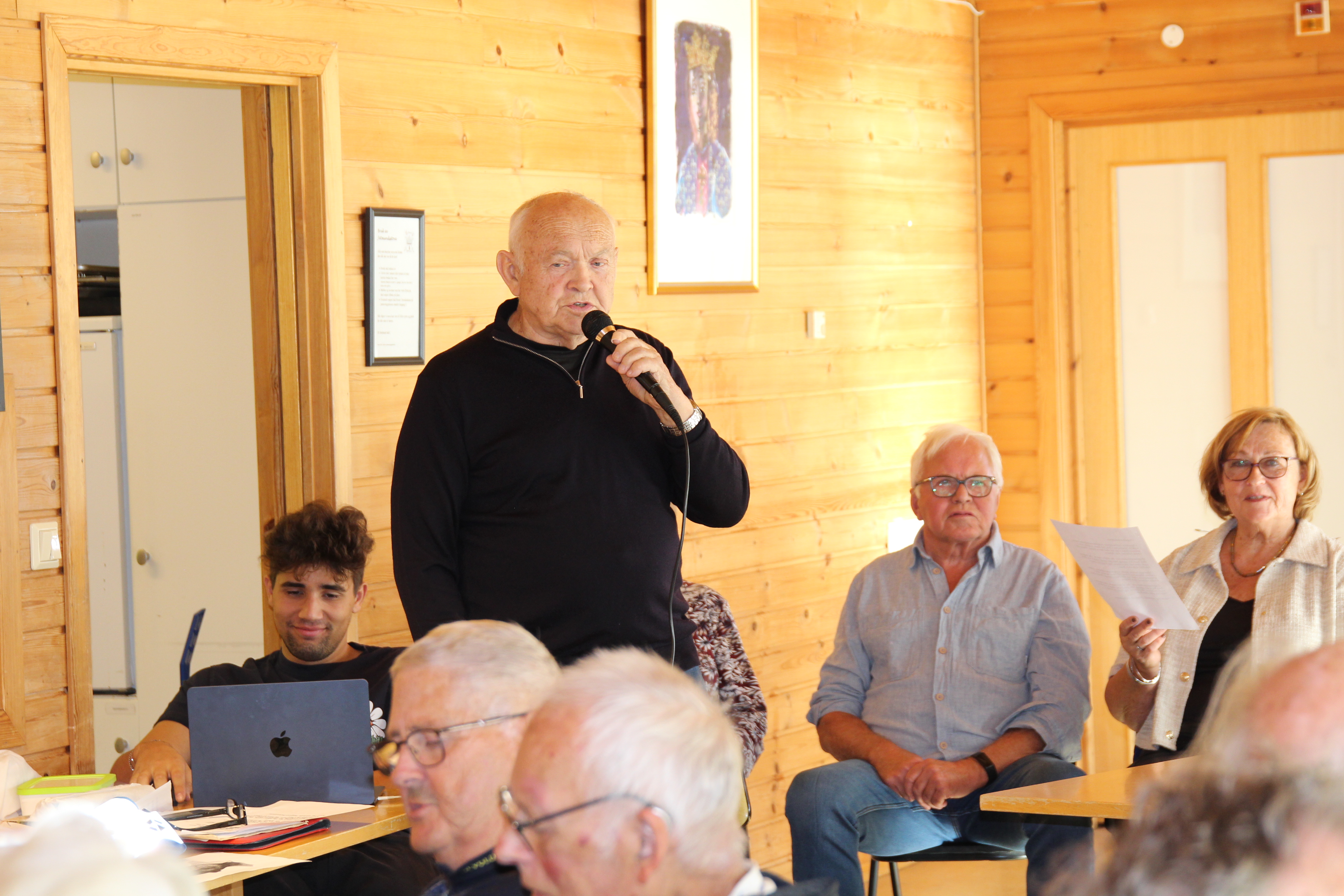 UNDERHELDT: Kjell Brenne med lydmann Kent Olav bak spakane, bidrog både med allsong, butte saman av tidsminne og historier, og ei eiga lita songøkt. FOTO: Ole Magne Kvalsvik
