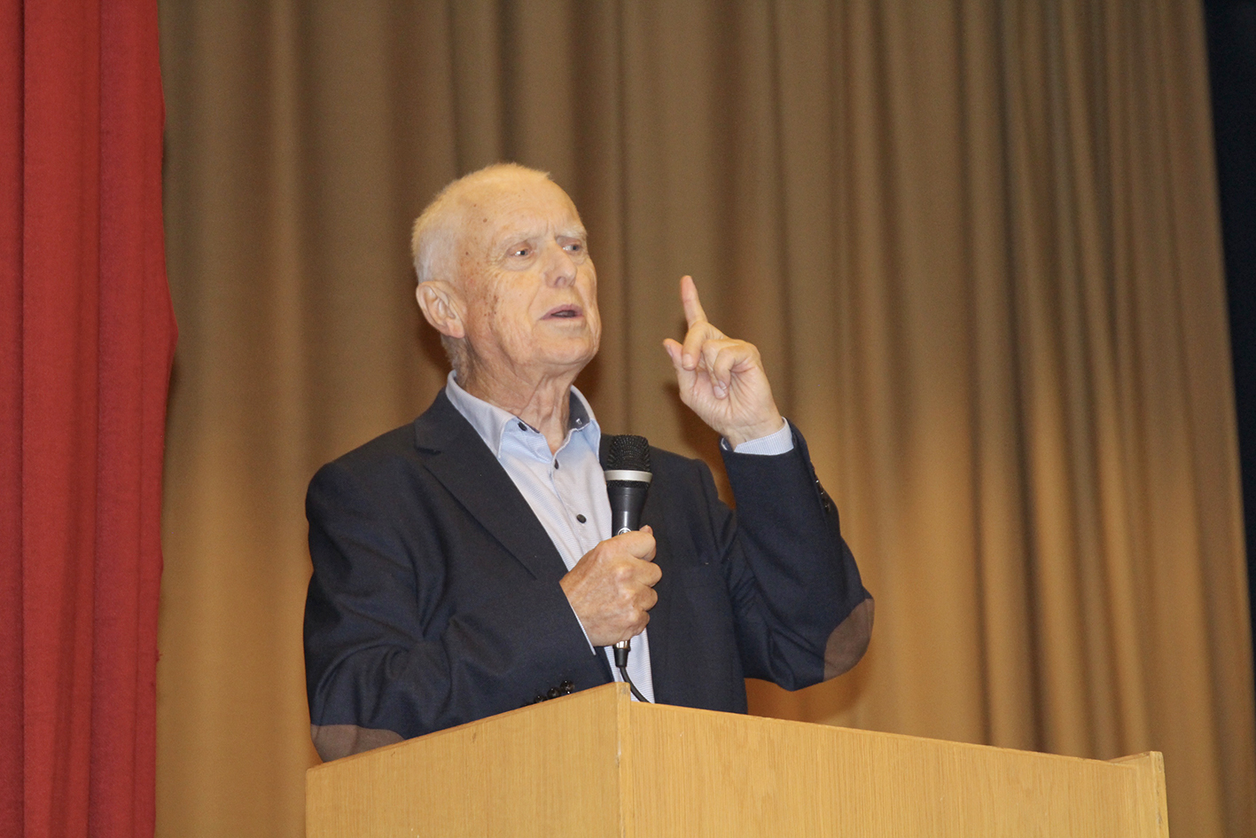 INNLEGGSHALDAR: Nils. R. Sandal heldt eit engasjert innlegg om fellesskapsverdiar og ein god alderdom. FOTO: Ole Magne Kvalsvik