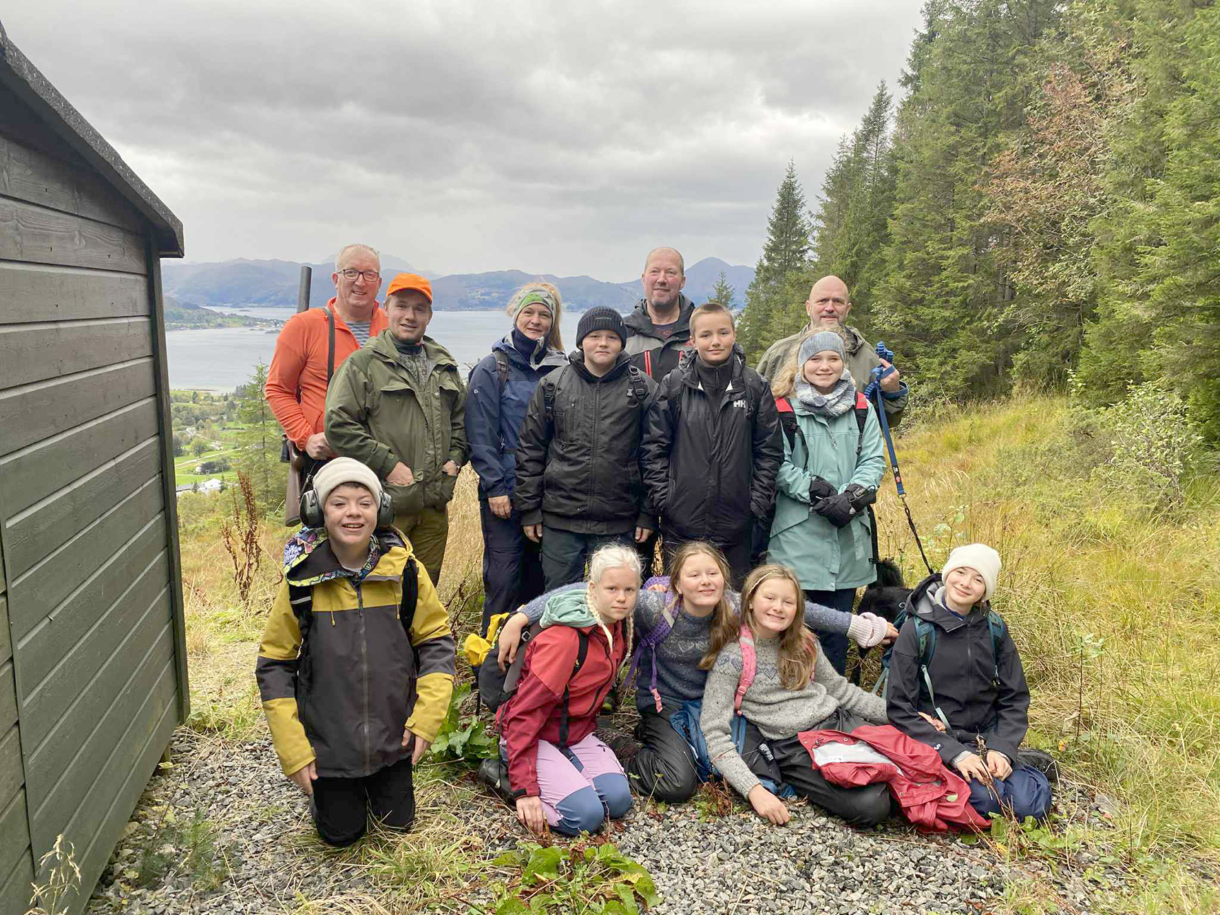 JAKTLAGET: Elevar, lærar og jegerar samla etter jakta. FOTO: Fiskå skule