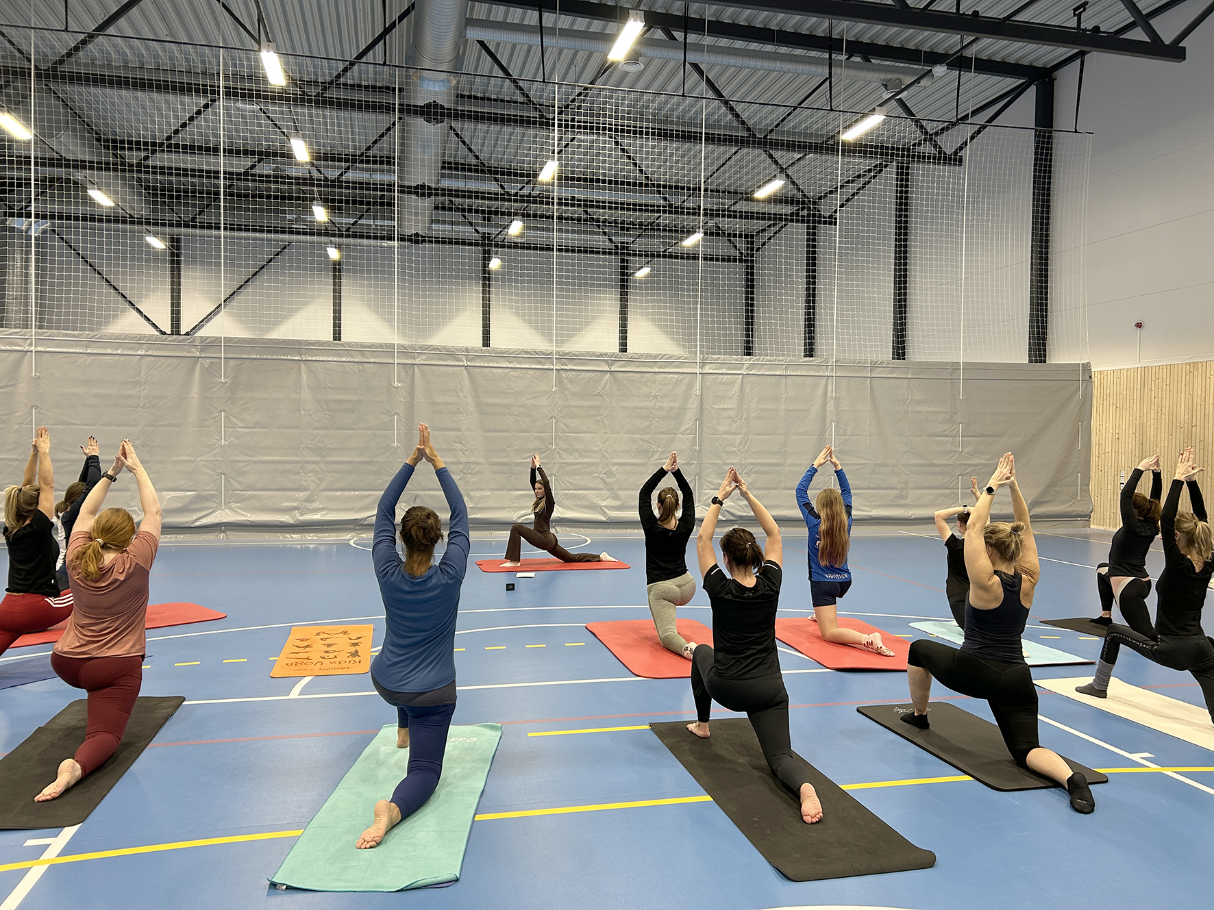 PILATES: Linea Lillebø har dei siste vekene kombinert praksis innan ambulansefag med å arrangere gruppetime i pilates dei vekene ho har vore heime. FOTO: Emilie Rætta